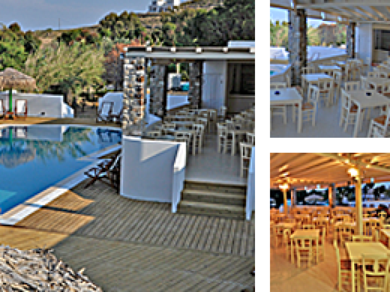 Sea Side ResortAmazing Vacation on Livadakia Beach in Serifos Aegean islandLounge Bar is sea front, and there is also a pool and Restaurant inside the complex. -